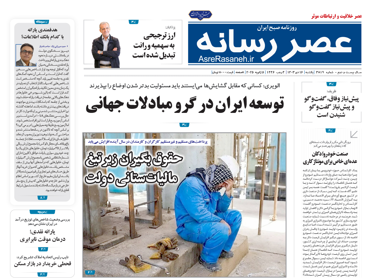 روزنامه عصررسانه ۱۴۰۳/۱۰/۱۶
