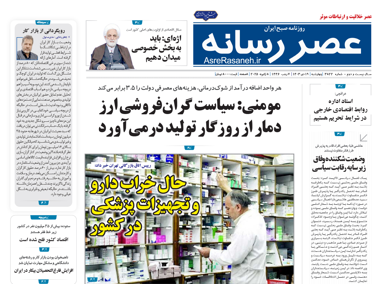 روزنامه عصررسانه ۱۴۰۳/۱۰/۱۹