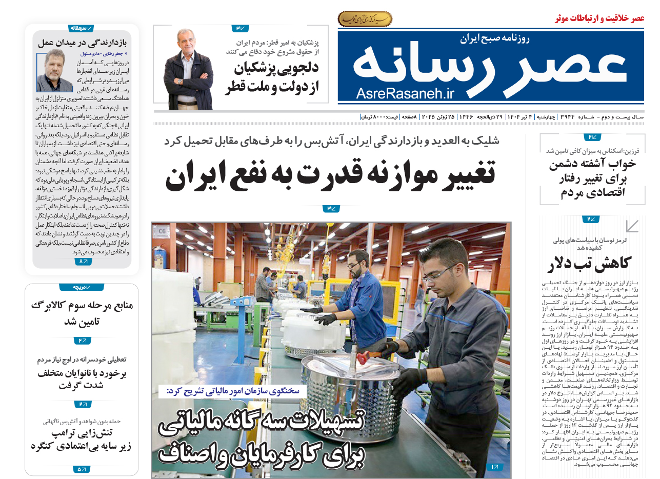روزنامه عصررسانه ۱۴۰۴/۰۴/۰۴