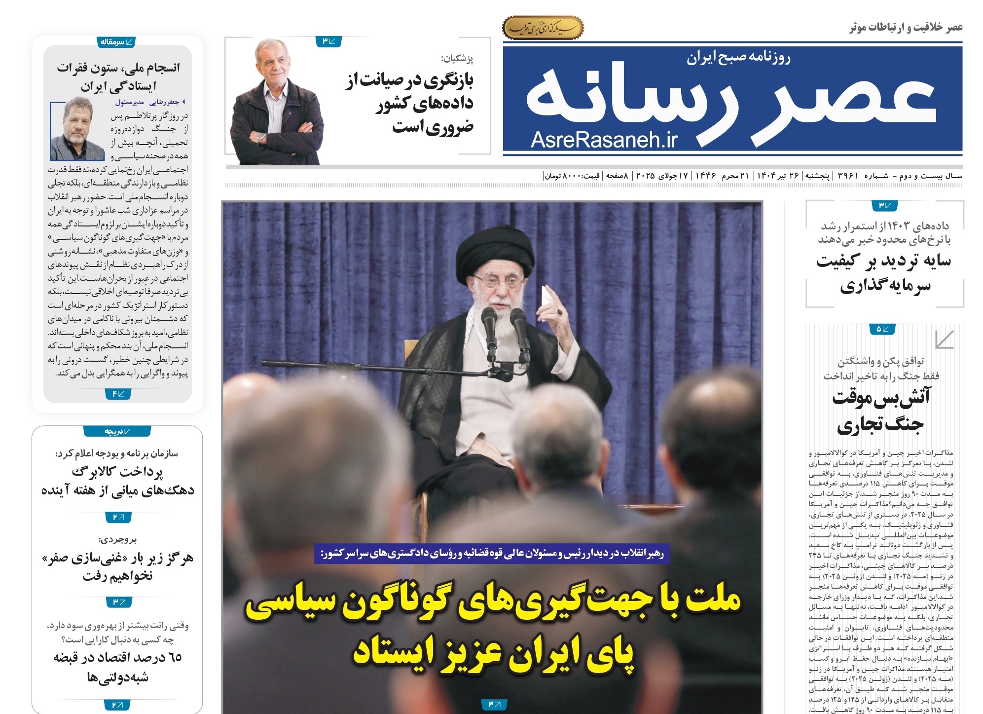 دانلودعصررسانه ۲۶تیر۱۴۰۴