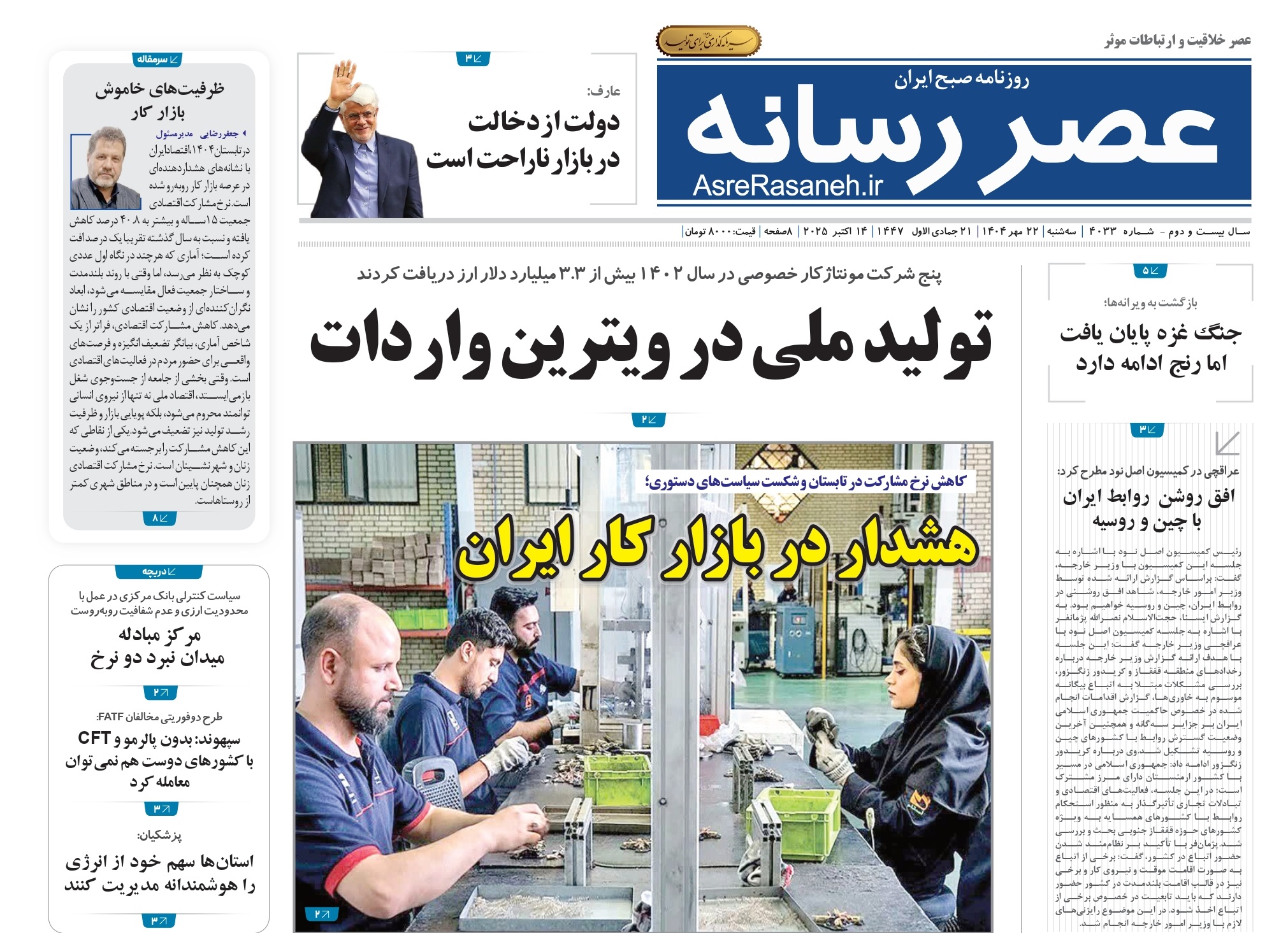 روزنامه عصررسانه ۱۴۰۴/۰۷/۲۲