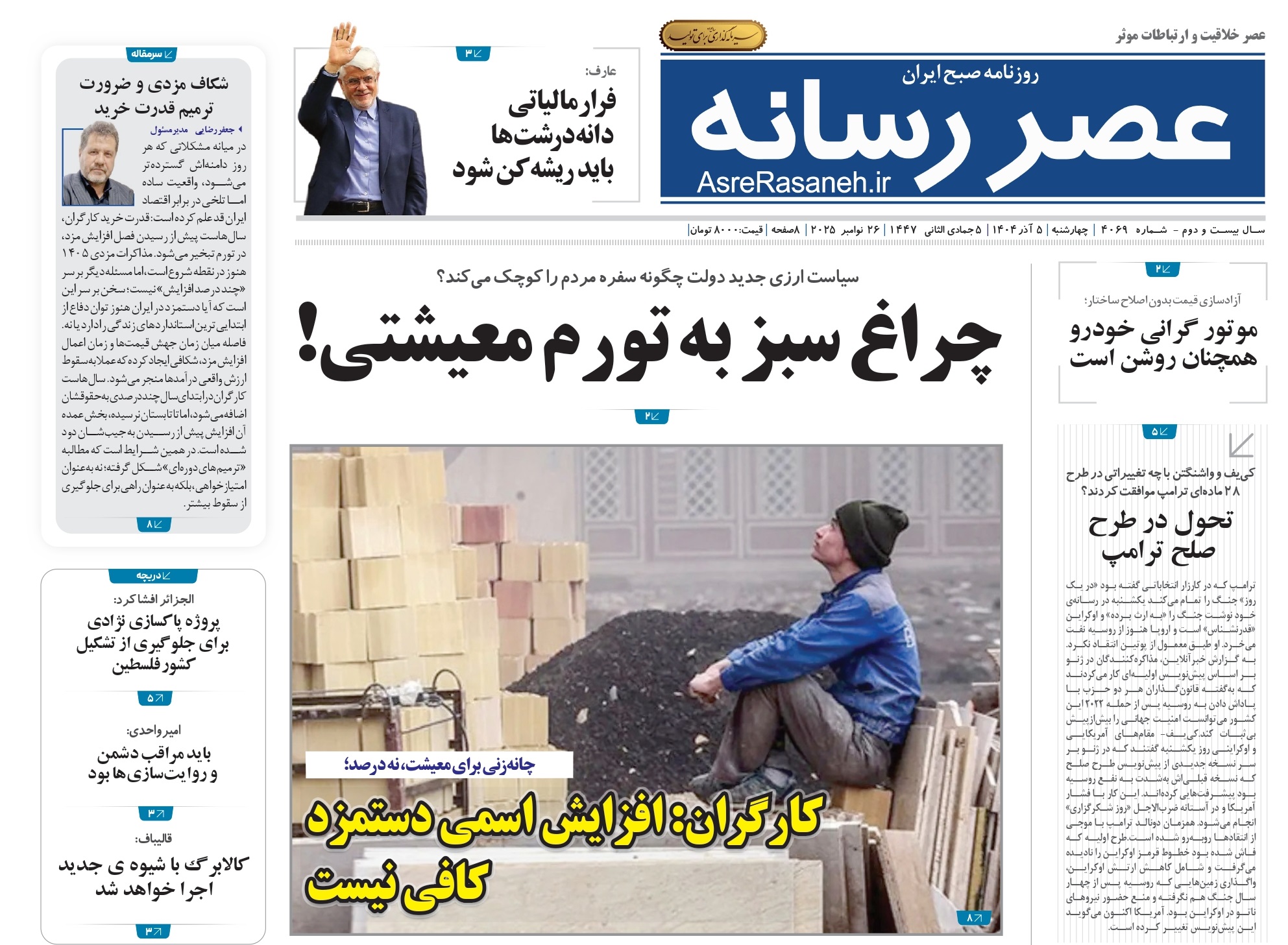 روزنامه عصررسانه ۱۴۰۴/۰۹/۰۵
