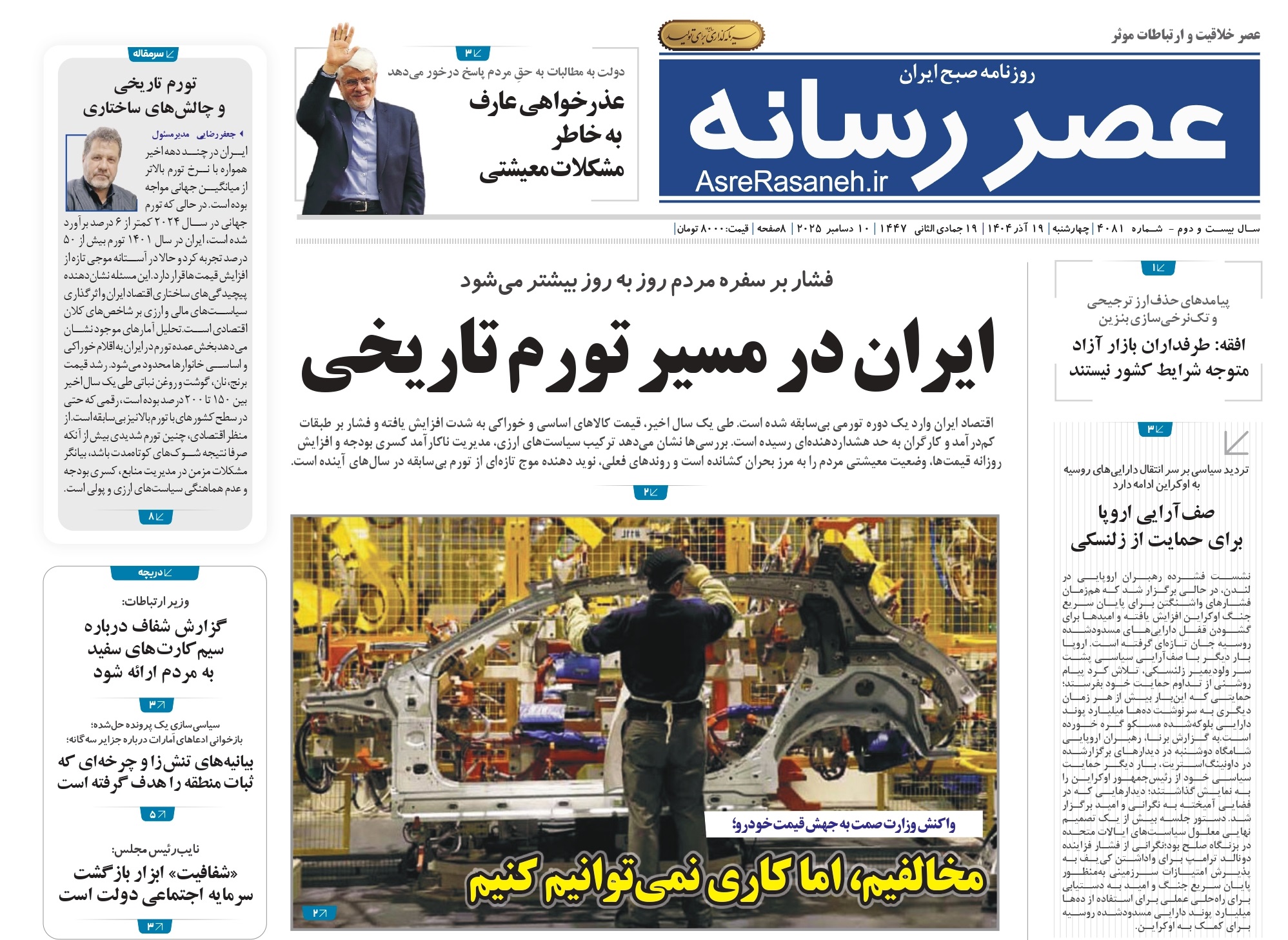 روزنامه عصررسانه ۱۴۰۴/۰۹/۱۹